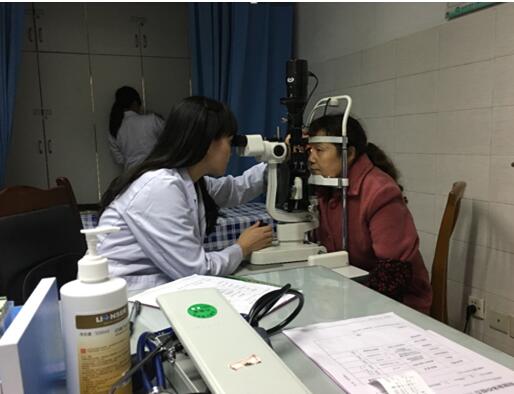 (三台華廈眼科醫院有限公司醫生黃曉旭正在給患者義診)