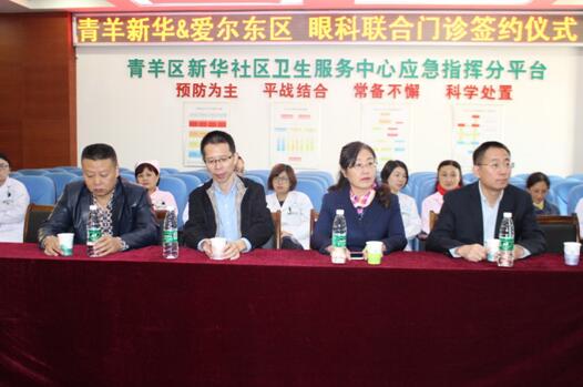 2017年10月27日,在青羊區衛生計生委的指導下,成都市青羊區新華少城社區衛生服務中心與三台華廈眼科醫院有限公司正式建立眼科聯合門診,并進行深度合作。這意味着,家住青羊區新華和少城兩個社區及周圍的居民,以後在家門口就可以享受到由愛爾眼科帶來的與國際同步的專業眼科診療服務。同時,标志着兩院順應醫改,深入社區邁出了實質性的步伐。