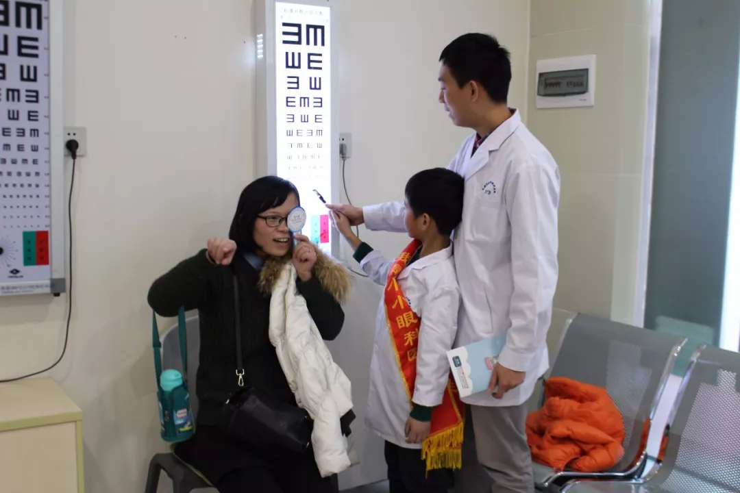 “今天我們小朋友(yǒu)學到了很多關于眼睛的知(zhī)識,下面我們體檢之後,也給我們的爸爸媽媽,爺爺奶奶檢查,好不好?”趙丹老師邊說邊把測試單分發給小朋友(yǒu),“在我們眼科醫院,測視力的時候,我們先測右眼,遮住左眼……”