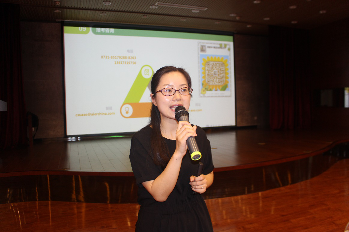 中南大學招生與就業管理部主任郭愛華以提問的方式進行互動,做學院概況和招生政策解讀,“中南大學是(shì)國家首批‘211工程’和‘985工程’院校,是(shì)湖南一所副部級大學。愛爾作爲全球眼科醫院連鎖集團,擁有強大資金實力及全國近300家醫院的臨床資源和經驗。中南大學愛爾眼科學院是(shì)中國專門培養眼科人才的學院,具有裏程碑式的意義。”