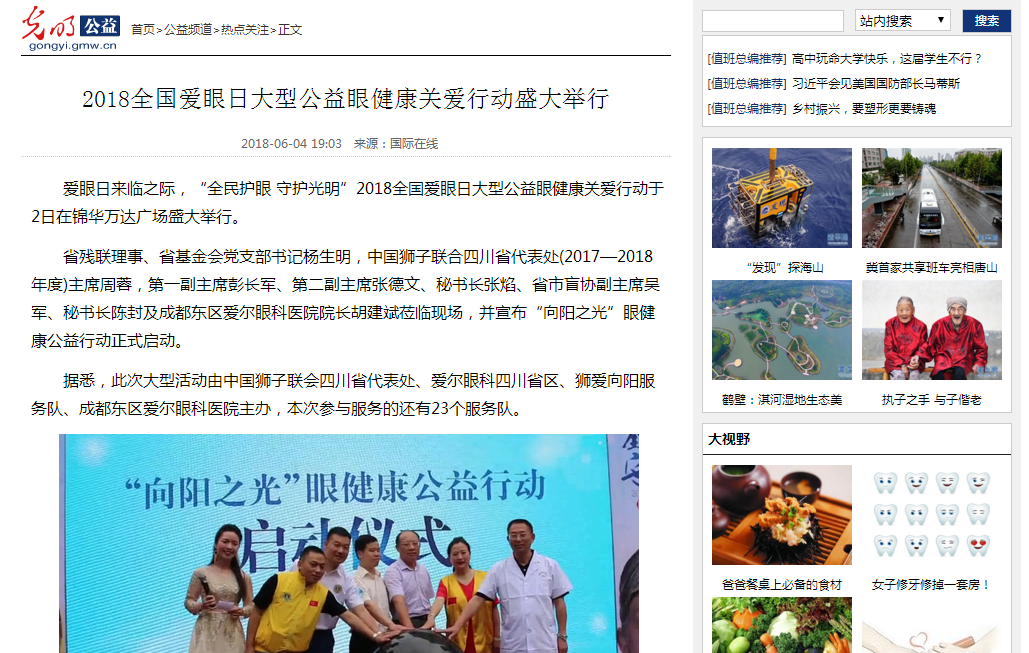 【光明網】“全民護眼 守護光明”2018全國愛眼日大型公益眼健康關愛行動盛大