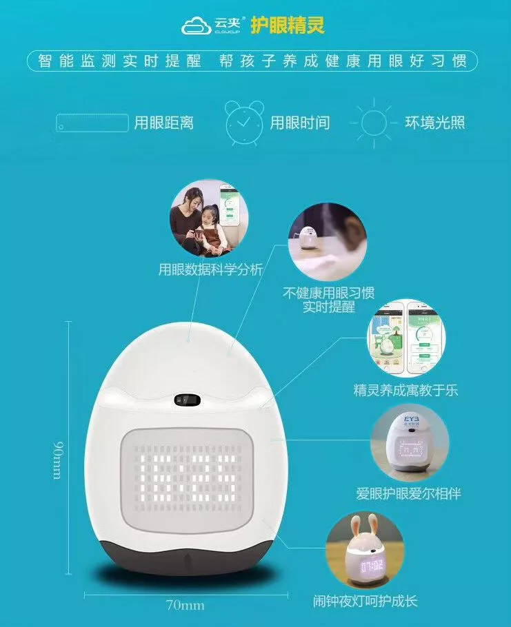 護眼小精靈作爲雲夾的“親兄弟(dì)”,它擁有“俊逸非凡”的高顔值,也擁有“超能力”。護眼小精靈有預防近視的作用,它能幫助孩子養成良好的用眼護眼習慣;監測孩子的用眼情況;在清晨,可以喚醒睡夢中的孩子;充當夜燈。