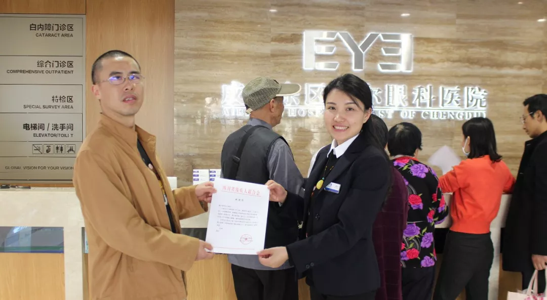 ▲四川省盲人協會秘書(shū)長陳封與東區愛爾事業發展部主任顔珍合影