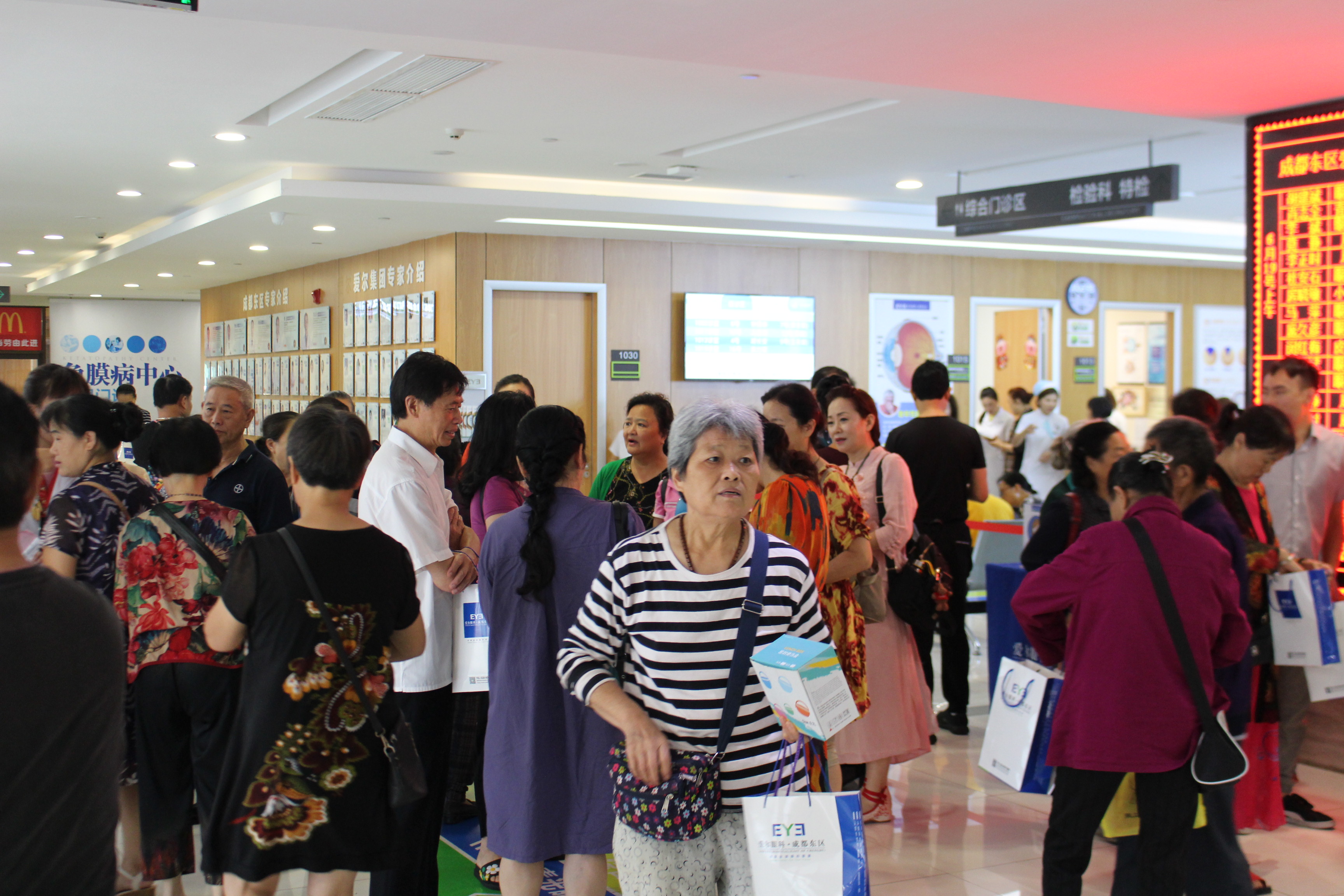 這次活動還設了義診,講座結束後,成都東區愛爾爲到場的逾100名嬢嬢伯伯進行檢查。