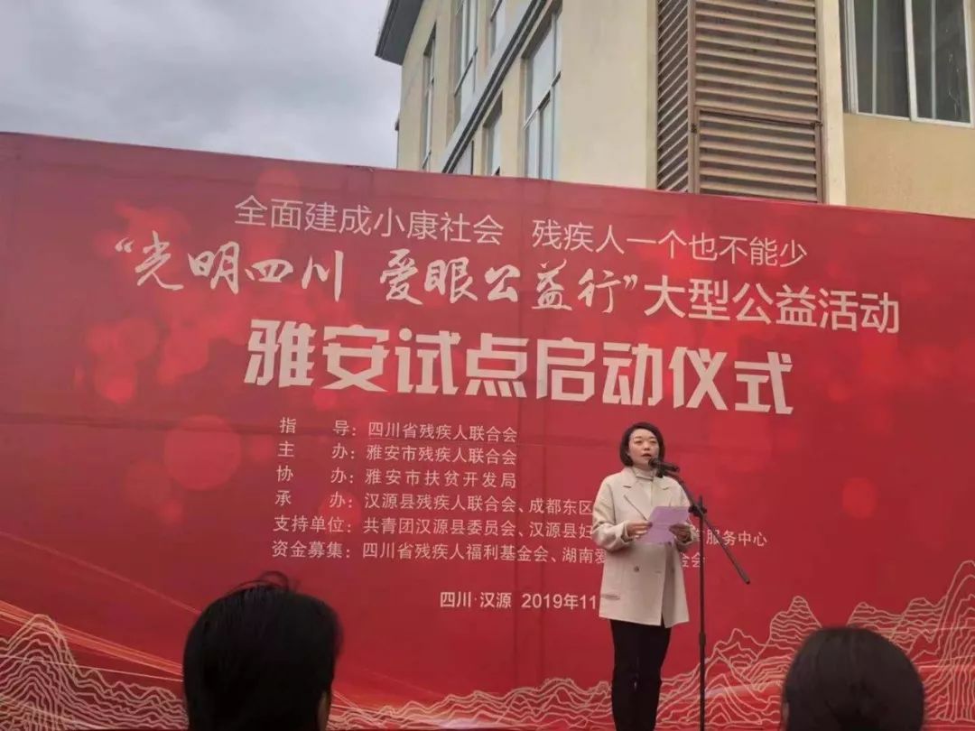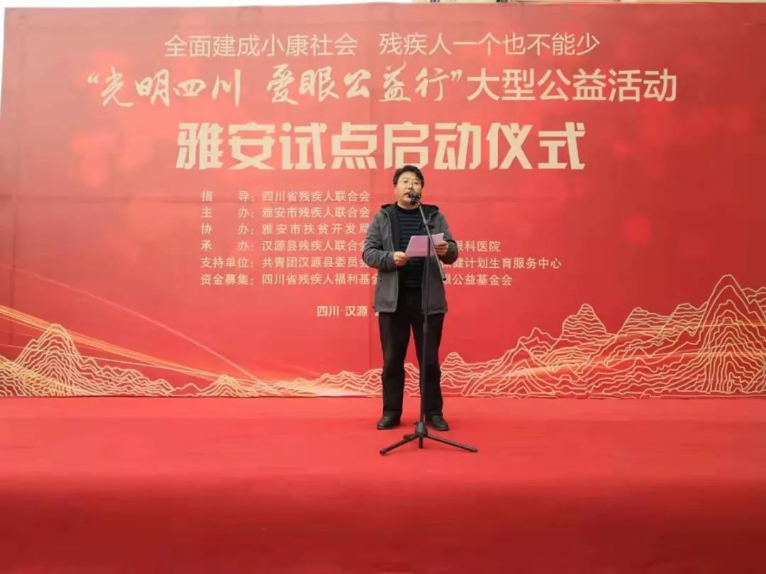 爲貫徹落實“全面建成小康社會,殘疾人一個也不能少”的指示精神,昨日(11月26日),在省殘疾人福利基金會的支持下,“光明四川•愛眼公益行——雅安漢源站”試點啓動儀式成功舉行。
