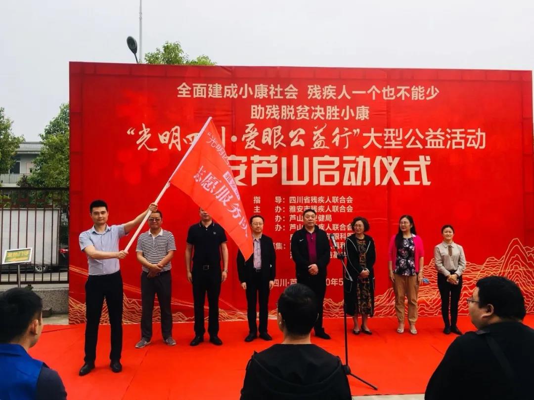 雅安市殘聯黨組成員(yuán)、副理事長高體強宣布項目正式啓動,緊接着舉行了授旗儀式,将象征蘆山項目啓動的旗幟傳到了三台華廈眼科醫院有限公司執行代表手中。