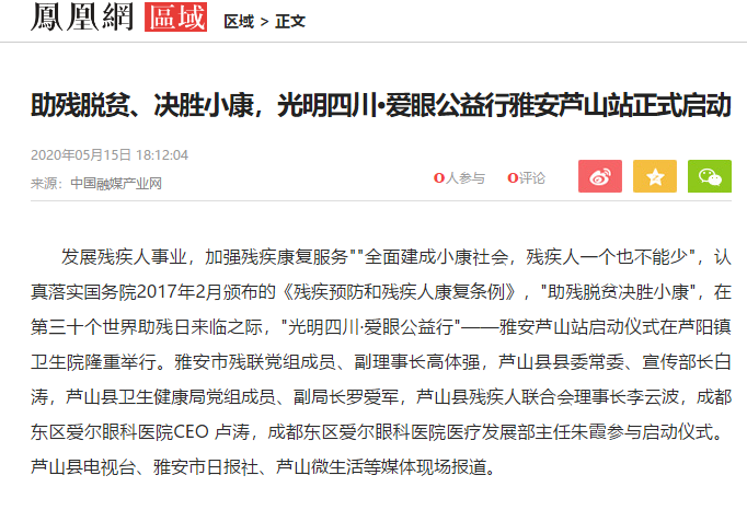 【鳳凰網】助殘脫貧、決勝小康,光明四川·愛眼公益行雅安蘆山站正式啓動