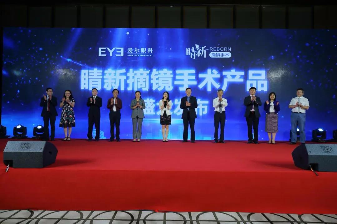 (睛新摘鏡手術專家指導組9位專家代表及愛爾眼科醫院集團副總裁、屈光手術事業部總監馮珺女士;愛爾眼科醫院集團醫療管理中心總監唐羅生教授共同啓動睛新摘鏡手術産品發布儀式)