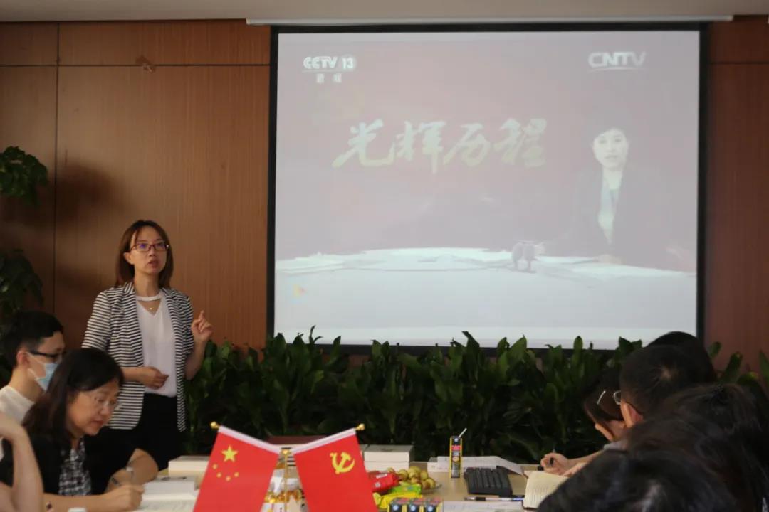 黨員(yuán)魯丹爲大家播放(fàng)了紀錄片《光輝曆程 開天辟地:中國共産黨誕生》,然後傳達建設路商圈黨委學習内容及會議(yì)精神
