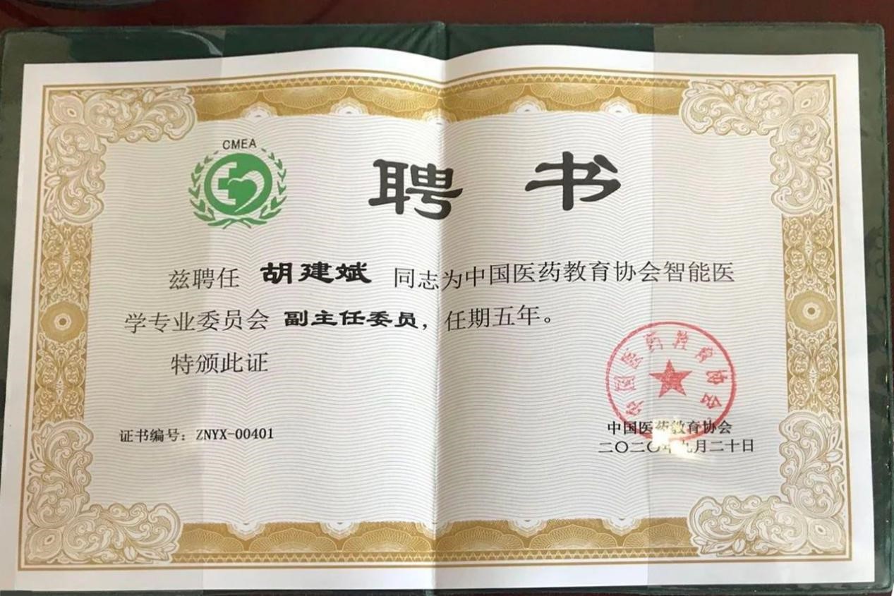 我院胡建斌院長受聘爲中國醫藥教育協會智能醫學專業委員(yuán)會副主任委員(yuán)