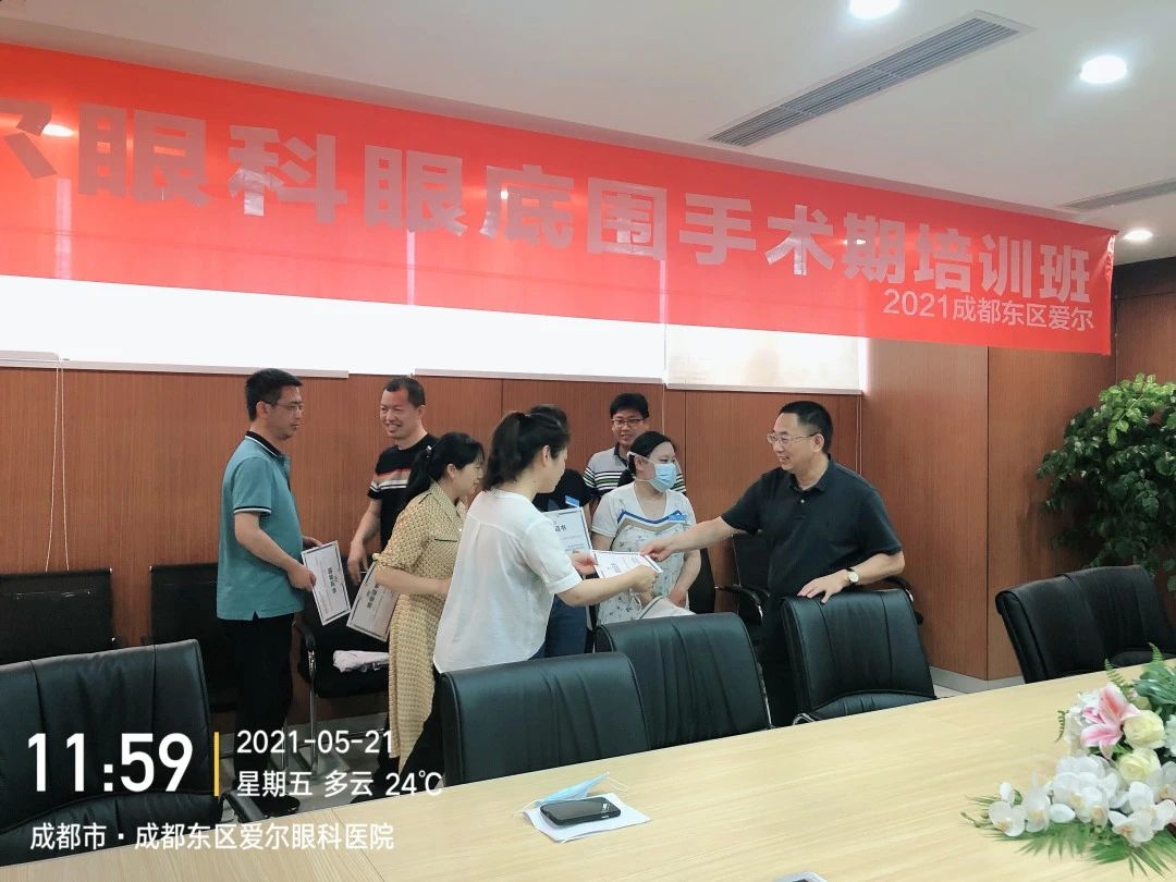 學員(yuán)在成都東區愛爾眼科接收結業證書(shū)