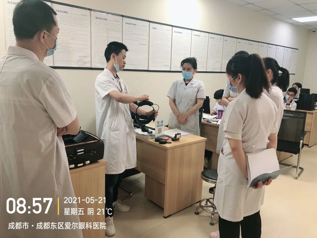 成都東區愛爾眼科向孟君醫生在爲學員(yuán)講解檢查方法