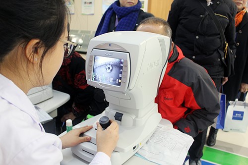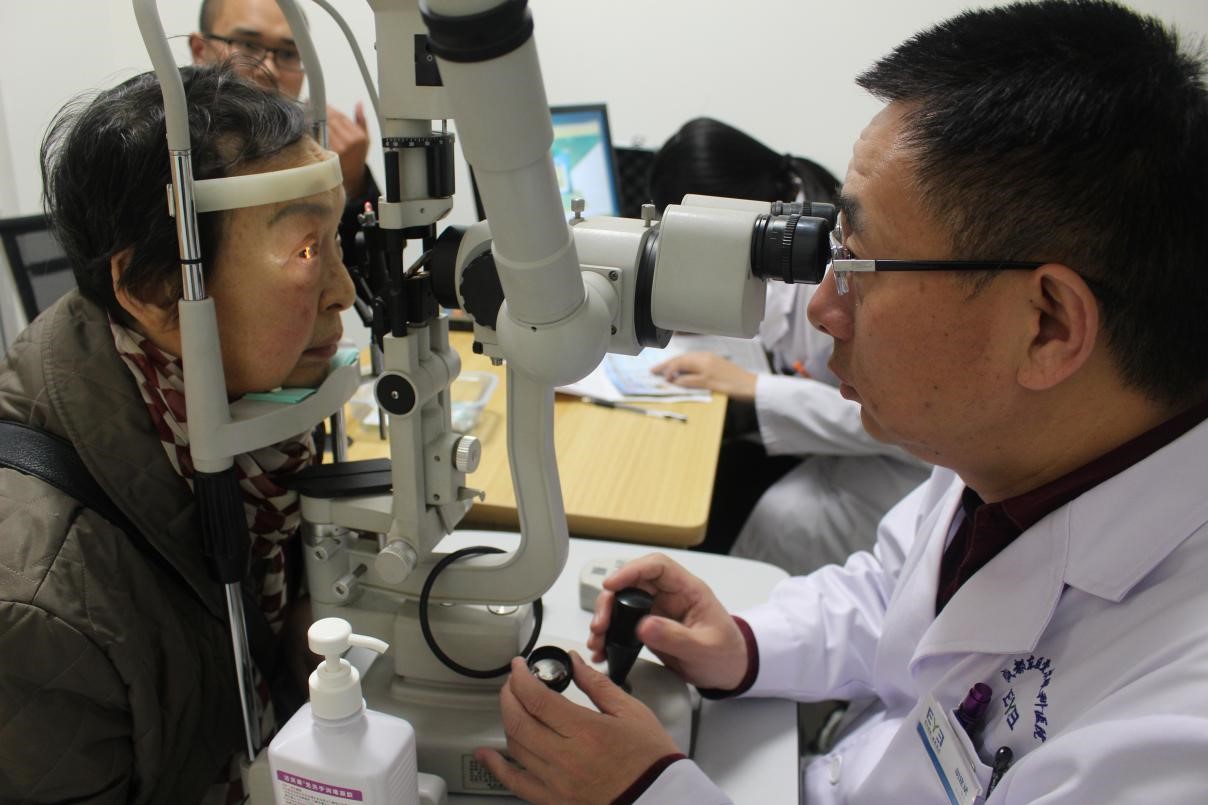 三台華廈眼科醫院有限公司胡建斌院長爲患者檢查眼底